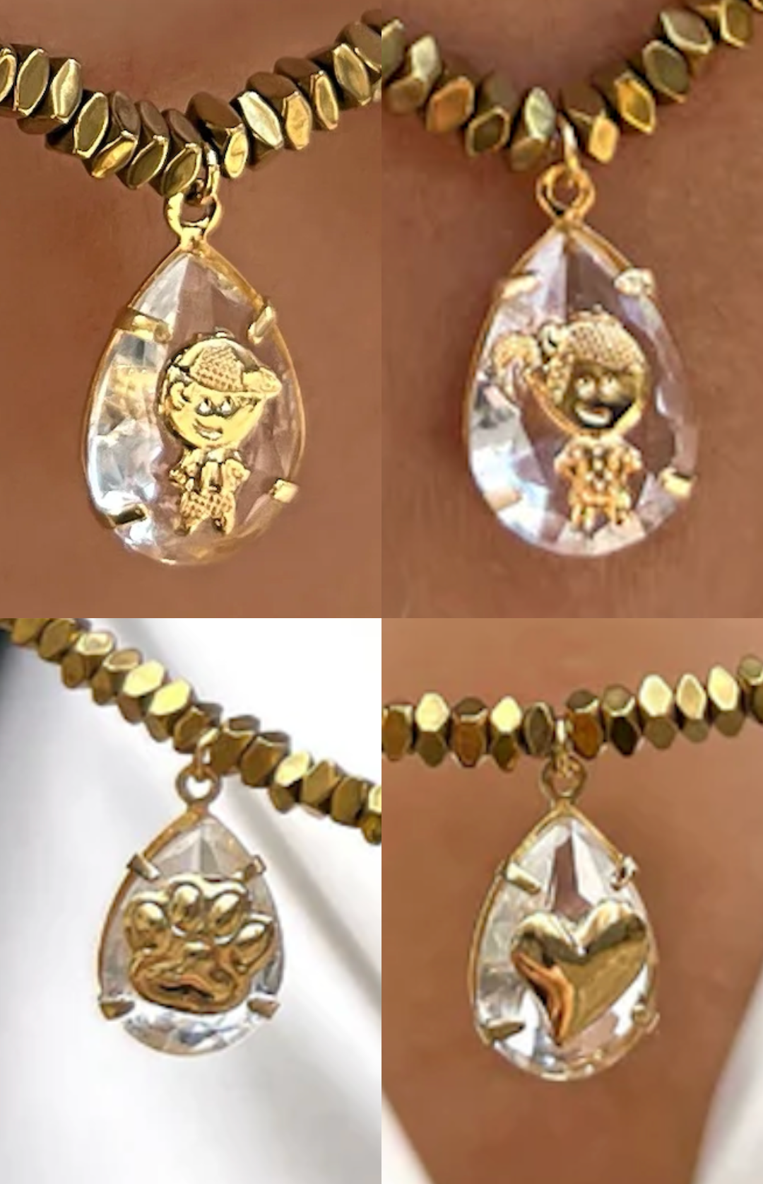 Disponíveis nos modelos menino, menina, patinha e coração, os pingentes acrescentam um toque distinto e simbólico, tornando cada colar verdadeiramente especial.